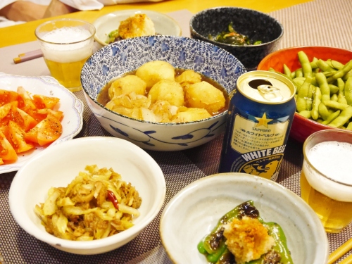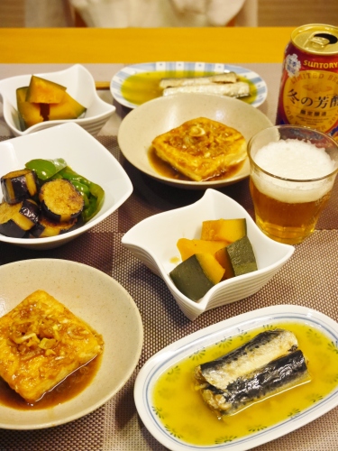 引きこもりのぐーたら生活が苦手な相方も、台風のおかげでこの週末は缶詰生活(笑)ぐーたら生活は歓迎ですが、3食食べさせなければいけない人がいる生活ってタイヘンですね…(^_^;)世の中のお母さんはエライよ、ホント!簡単にできるレシピ×5品でかんべんしてもらった今日の夕食。居酒屋メニューっぽく、ちまちま並べてみました(笑)こういうときに豆腐は大活躍ですよね~♪冷や奴だと前菜やお通し的な感じになりますが、今回は、メインディッシュや焼き物がないこんだてになってしまったので、豆腐ステーキにしてみました(^m^)モニターでお世話になって以来、すっかり冷蔵庫の定番になった小分けパックのお豆腐、タカノフーズさんの絹美人&もめん美人。今回は、味なじみのよいもめん美人のお世話になりました。絹美人でもOKですが、不器用な私はやわらかい絹豆腐だとひっくり返すときの成功率が半々なので、もめん美人で(笑)普通サイズのお豆腐1丁を半分にカットしてもよいのですが、包丁いらずで、ほどよい厚みの小分けパックは、豆腐ステーキにピッタリなんです♪ネギポン酢を絡めるだけ★豆腐のステーキ料理名:ネギポン酢を絡めるだけ★豆腐のステーキ作者:yunachi■材料(2人分)小分けタイプの木綿豆腐(もめん美人) / 2パック長ネギ(粗みじんに切る) / 1/2本ポン酢 / 大さじ3ゴマ油 / 大さじ1■作り方1.粗みじんに切った長ネギをポン酢と混ぜておく。2.豆腐をキッチンペーパーでくるみ、電子レンジ500wで3分加熱する。3.フライパンにゴマ油を熱し、豆腐の両面に焼き色をつけるように弱めの中火で焼く。4.豆腐の両面に焼き色がついたら、ネギポン酢を入れて、豆腐を数回ひっくり返して、全体をざっとからめたら完成。5.器に豆腐を入れ、上からネギポン酢をかけるようして盛り付けてください♪■レシピを考えた人のコメントレンチンして水切りした豆腐をさっと焼いて、ネギポン酢をかけるだけ!あと1品が欲しいときにおすすめです♪詳細を楽天レシピで見る━━━━━━━━━━━━━━━━━━…↓↓ ポイントが貯まるレシピ サイト ↓↓>>最短約 30 秒!▼無料▼会員登録<<━━━━━━━━━━━━━━━━━━…味ポンのCMで、プリの味ポン焼きを見て、そんなにおいしいなら豆腐ステーキも味ポンだけでいいんじゃね?と思ってやってみたら、大成功(笑)おしょうゆよりも味ポンの消費量が多いのは、こういうメニューが多いからですね(^_^;)絹豆腐・もめん豆腐の料理レシピ ★ランキング参加中★ あしあと代わりにポチッとお願いします♪レシピブログに参加中♪ にほんブログ村 にほんブログ村 ★いつもブログの応援ありがとうございます★