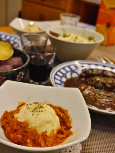 北海道の実家から届いた大量のじゃがいもを消費すべく、じゃがいも料理が続いています。…が、定番レシピはあらかた登場しつくしたので、ちょっと手をかけてオシャレ(に見える)一皿にしてみました。マッシュポテトに、トマトソースを添えただけ(笑)食べる時に混ぜ混ぜしながらいただきます♪トマトソースは、みじん切りにしたベーコン・玉ねぎにデルモンテ クッキングトマト・ソースを入れるだけ。バジル、オレガノ、などのイタリアンハーブはお好みで。今回は、ワンパターンなじゃがいも料理からの脱出がテーマだったので、少したっぷりめに入れてみました(笑)デルモンテのクッキングトマト・ソースは、初めて使いましたが、パウチ式のパッケージで使いたい量だけ使えるのがいいですね♪ちょっとだけトマトソースを作りたいときにピッタリの商品でした★デルモンテ クッキングトマトソース / デルモンテ★税抜1900円以上で送料無料★デルモンテ クッキングトマトソース(285g)【デルモンテ】イタリアントマトソースDEポテトサラダ料理名:イタリアントマトソースDEポテトサラダ作者:yunachi■材料(2人分)じゃがいも / 小2個バター / 大さじ1/2牛乳 / 30~50cc程度オリーブオイル / 大さじ1玉ねぎ(みじん切り) / 1/4個ベーコン(みじん切り) / 1枚*デルモンテ クッキングトマト・ソース / 大さじ4*水 / 100cc*白ワイン / 大さじ1*バジル・オレガノ・イタリアンパセリなど / 小さじ1程度塩・胡椒 / 少々■作り方1.じゃがいもはよく洗い、シリコンスチーマーに入れ、電子レンジ500wで6~8分加熱。 ※竹串がすっと通ればOK2.じゃがいもが熱いうちに皮をむき、フォークでつぶしながら、バターを混ぜ、バターが完全に溶けたら、牛乳を加えて伸ばす。3.【2】のマッシュしたポテトをスプーンで丸めながら形作り、皿に盛り付ける。4.フライパンに、オリーブオイルを入れ、ベーコンを炒める。ベーコンの脂が出てきたら、玉ねぎも加え、さらに中火で炒める。5.玉ねぎが透き通ったら*を入れ、煮立ったら弱火にして5分ほど煮てから、塩・胡椒で味を調え、火を止める。6.ポテトの周りにトマトソースを添えて完成♪■レシピを考えた人のコメントマッシュポテトに、イタリアンハーブをきかせたトマトソースを添えてみました♪小さなカップに入れてパーティのオードブルにも!詳細を楽天レシピで見る━━━━━━━━━━━━━━━━━━…↓↓ ポイントが貯まるレシピ サイト ↓↓>>最短約 30 秒!▼無料▼会員登録<<━━━━━━━━━━━━━━━━━━…さて、前回のお買いものマラソンで、久しぶりに器を買い足しました。ちょっと深めで、すり鉢状になっていて、カンタンに山高な盛り付けがキマりそうな器、と思って探していたので、ビンゴ♪本当は、和食器がいいな~と思っていたのですが、なかなかよい形の和食器と巡り会えずにいるので、とりあえず和食・洋食どちらでも使えそうなシンプルな白い食器で決心しましたが、これはこれでよかったです♪こういう変形デザイン(?)の食器の難点は、洗いにくいこと(笑)石けんで洗うせいか、洗っているときに食器が滑りやすいので、高価な食器ではないにしても、縁があって我が家の食卓で活躍してくれているわけですから、割らないように気を付けて大切に使いたいと思います(^_^;)【クーポン配布中】白い食器スタイリッシュイ角サラダボール 食器 洋食器 ナチュラル シンプル 02P12Oct14価格:410円(税込、送料別) ★ランキング参加中★ あしあと代わりにポチッとお願いします♪レシピブログに参加中♪ にほんブログ村 にほんブログ村 ★いつもブログの応援ありがとうございます★