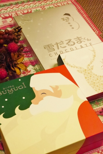 …思いっきりタイミングを逃した話題で恐縮ですが、クリスマスにステキなスイーツが届きました!北海道みやげの定番・白い恋人でおなじみの石屋製菓さんのお菓子セット♪---------------------------------------------------「白いバウムTSUMUGI(つむぎ)クリスマスパッケージ」「美冬3個入クリスマスパッケージ」「雪だるまくんチョコレート」---------------------------------------------------こんなにステキなクリスマス限定商品があるんですね~★このパッケージだけでクリスマス気分が盛り上がります♪クリスマスモードのテーブルでいただくティータイムはこんな感じ。◆「白いバウムTSUMUGI(つむぎ)クリスマスパッケージ」 ホワイトクリスマスにピッタリの白いバームクーヘン。白い恋人に使われているホワイトチョコレートが練りこまれていて、しっとり&ふんわりとした焼き上げり。白い恋人は甘さが強いお菓子のイメージですが、こちらのバームクーヘンは甘さ控えめでいくらでも食べられそう(笑)◆「美冬3個入クリスマスパッケージ」 雪の結晶をトナカイの形に並べたスタイリッシュなデザイン♪ワンコインのクリスマスギフトにピッタリ♪ギフト用のラッピングをせずにこのまま渡したいくらいキュートなデザインですよね!北海道のお菓子は、ワンコインのパッケージがどこのメーカーも充実しているイメージがあります。東京だとワンコインでこのクォリティはあまり見かけないような…都会は物価が高いからね~(^_^;)左から、・ブラックチョコレートwithブルーベリー ブルーベリーの酸味と濃厚なブラックチョコレートの相性がいいですね~・ミルクチョコレートwithキャラメル まろやかなミルクチョコレートにキャラメルのコクのある甘みにとろけます…・ホワイトチョコレートwithマロン ホワイトチョコレートのやさしい甘さとほっこりとした栗の風味、この組み合わせも新鮮でいいですね♪チョコレートの美味しさが際立つ組合せがチョイスされていて、サクサクのミルフィーユの食感もたまりません★◆「雪だるまくんチョコレート」個包装のチョコレート、パッケージも雪だるま柄!かわいい~★中は、雪だるまの形のホワイトチョコレート。これ、職場のおみやげに配るのにぴったり!次回の帰省みやげはこれにしよう(笑)冬季限定商品のようですが、冬季って…いつまで??▼雪だるまくんチョコレートの詳細はコチラ▼http://www.ishiya.co.jp/item/y-chocolate/クリスマス限定パッケージの白いバウムTSUMUGI(つむぎ)も美冬もいいけれど、同じようにスタイリッシュなデザインで冬季限定パッケージがあれば、おみやげに選びたいな~。白い恋人のクラシックなパッケージデザインもいいけれどね(^m^)石屋製菓の本社工場は、白い恋人パークというテーマパークになっています♪工場見学はもちろん、カフェ・レストラン、ショップが併設されており、お子さんも楽しめる体験イベントもいろいろあり♪◆白い恋人パークhttp://www.shiroikoibitopark.jp/冬は(リーフレットの夏のさわやかな風景とは程遠く、真っ白な世界ですが)イルミネーションも華やか★白い恋人パークがオープンしてまもない頃に行った記憶があります。長続きするのかな~??と思っていましたが(失礼しました!)、観光スポットとしても定着したようですね♪私のオススメは、白い恋人のホワイトチョコレートを使用したソフトクリーム。ホワイトチョコレート使用なのにあっさりめでおいしいんです!北海道物産展で食べられることもあるので、気になる方はチェックしてみてくださいね(^o^)b白い恋人のチョコレートドリンクも、寒い季節に温めて飲むとおいしいです♪ミルクリッチな味わいの飲むチョコレート♪石屋製菓 白い恋人チョコレートドリンク 3缶入[北海道お土産]fs04gm新千歳空港でも売っているので、時々買って帰りますが、ドリンクは重いので持ち帰るのには勇気(と根性)がいります(^_^;)余談ですが、今年のクリスマスケーキは、ガトーショコラでした♪しかも、クリスマスディナーの前のおやつタイムにいただいたという反則技(笑)毎年お腹いっぱい呑みすぎ&食べ過ぎで、おいしいケーキをおいしく食べられないので、ディナー前にケーキを食べてみました(^m^)まぁ、これはこれでありかな(笑)石屋製菓ファンサイト参加中石屋製菓オンラインショプ ★ランキング参加中★ あしあと代わりにポチッとお願いします♪レシピブログに参加中♪ にほんブログ村 にほんブログ村 ★いつもブログの応援ありがとうございます★