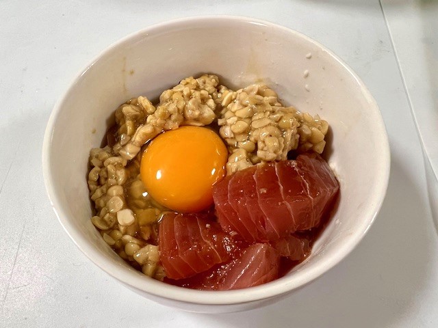 さっき買ってきた「まぐろ刺身」(柵をカット)
