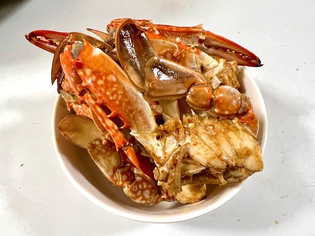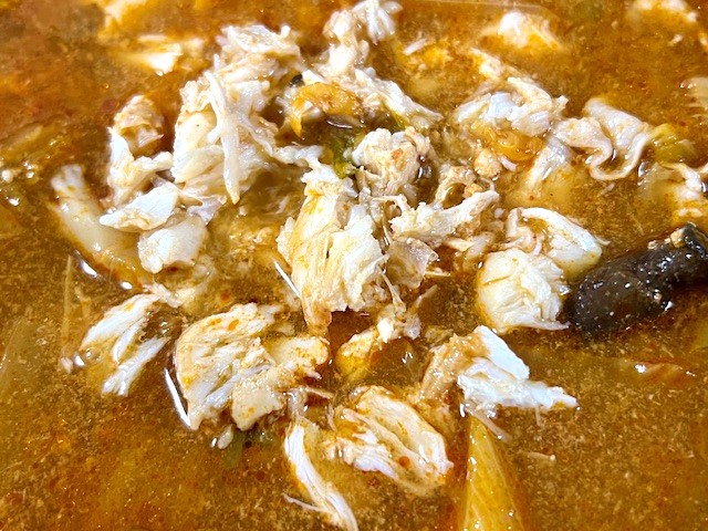 残ったスープに「ワタリガニ」の身をほぐして入れて