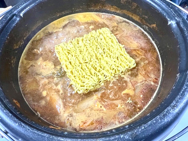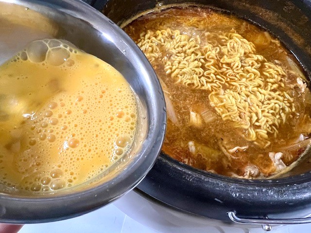 旦那君は「ラーメン」を入れて煮てかき玉にして