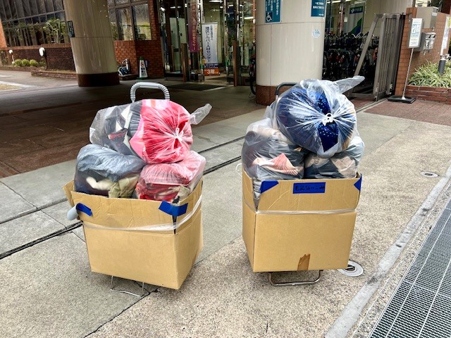 整理して、「着物」や「帯」を古着回収に持って行きました