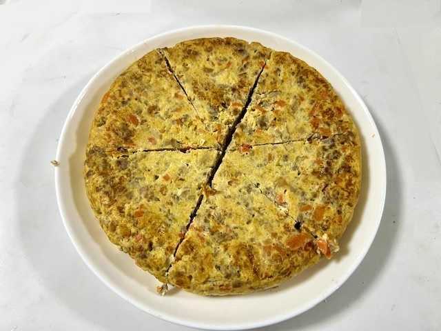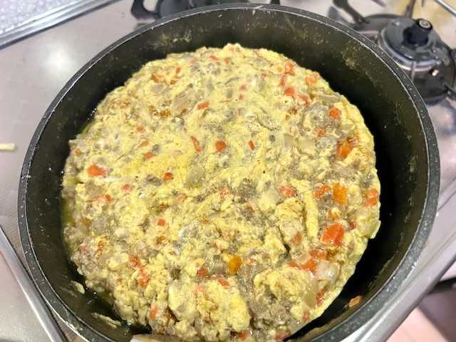 『ひき肉&玉ねぎ&にんじんのスパニッシュオムレツ』