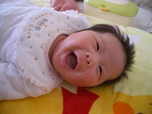 ミュウはよく寝る。夜は大体、7時に就寝。早かったら6時。で、1度目の就寝は、4~6時間は起きないので、ゆうなもこの時間にまとめて寝ることができるのですが・・・2・3日前のことですが、夜、7時半にミルクをあげたら、2時半まで起きませんでした♪それも、とおちゃんが寝てるミュウのオムツを替えたから、起きちゃっただけ。起きたついでに授乳をしたら、朝までぐっすり♪♪♪なんていい子なの!!前の日にお出かけしたから疲れたのかな??でも、2ヶ月前にして、昼夜の区別はしっかりできてそう♪このまま成長してくれたらいいな~♪♪♪
