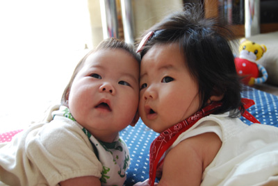 友達が遊びに来たときのこと・・・友達ベビとミュウが後ろを向いていたので、2人を呼んでみると・・・2人で何の悪巧みをしていたの???