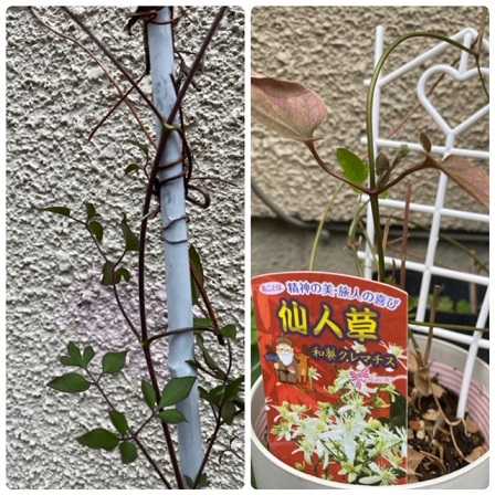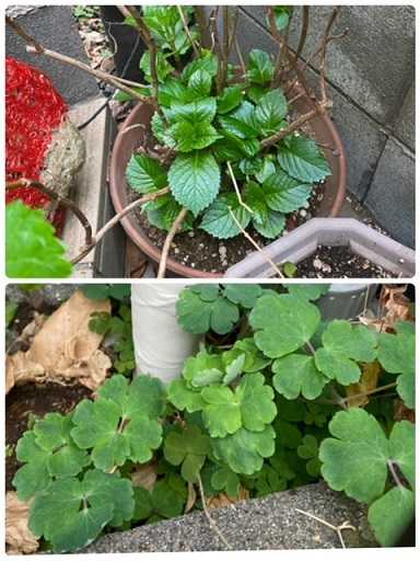 鉢から飛び出したオダマキも狭い場所で頑張ってる