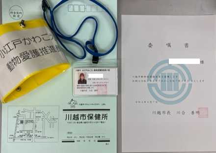 委嘱書、腕章、写真入り証明書、賠償保険証。