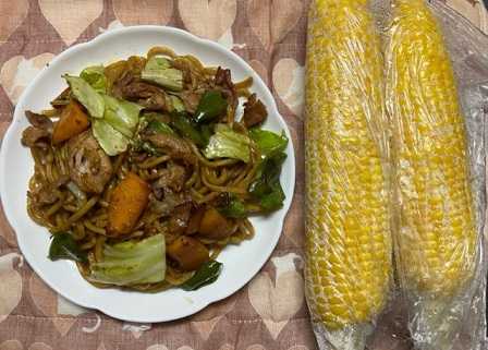1cm位の厚さに切って夕食の焼きそばに入れました。