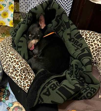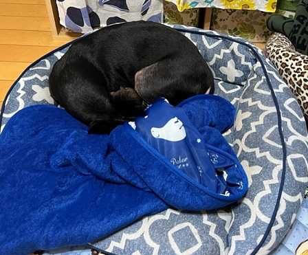 毛布に包まってベロ出して寝てたルークぽっ