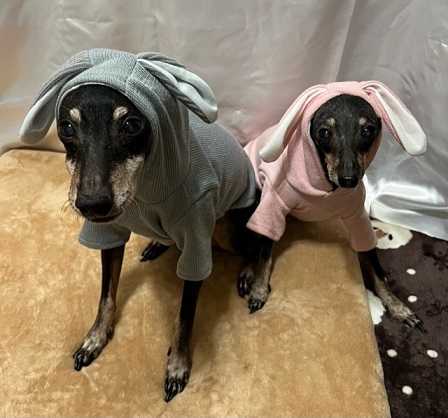 レイアとマースには色違いのうさ耳フード付きパーカー。