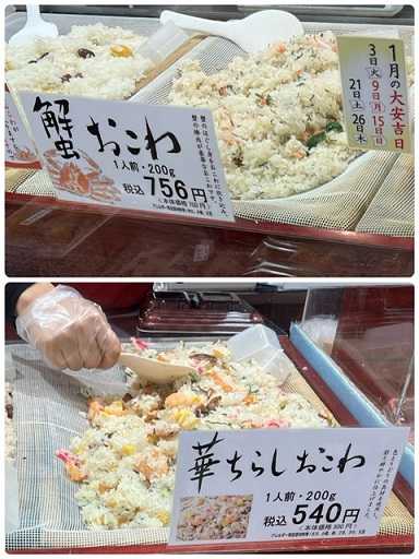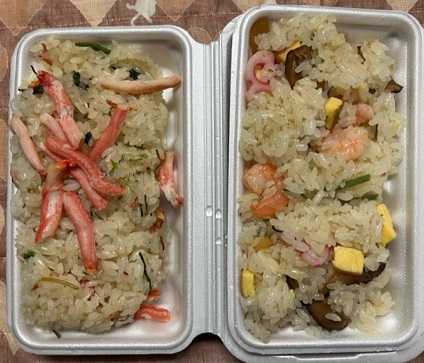 左側が「蟹おこわ」で右側が「華ちらしおこわ」