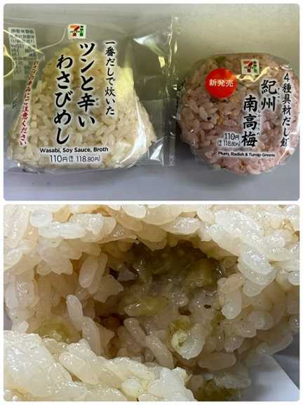 だしを効かせた御飯の中に、わさび漬けの刻んだわさび入りです。