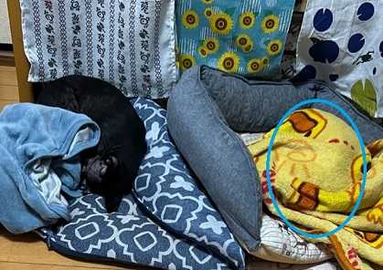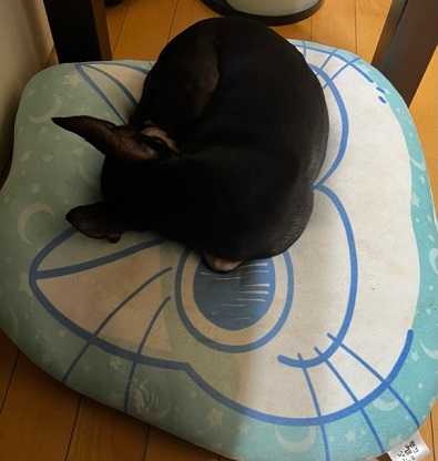 猫柄のクッションですが、ふわふわ~で寝心地良さそうです。