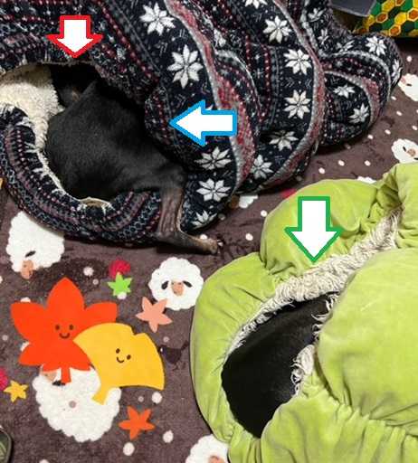 レイアは、ホイホイの入り口付近で丸まっていました。
