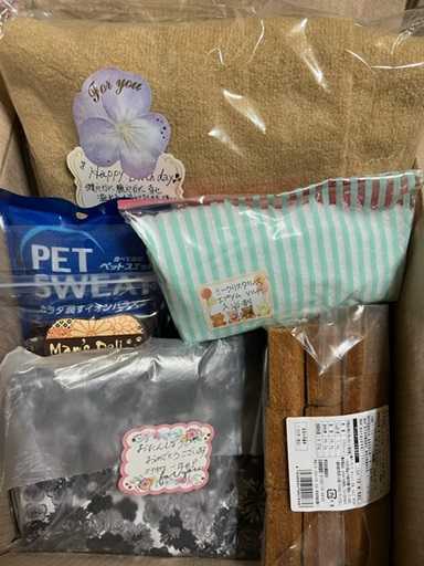 お誕生日プレゼントが箱いっぱいに詰まって届きました