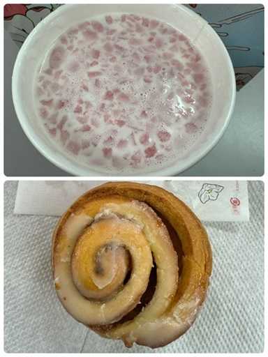 一緒に温かいシナモンロールも買ってきて下さったので