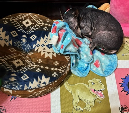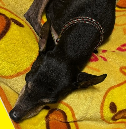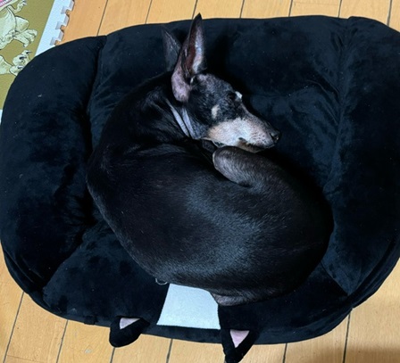 ルークはしっかり、ベッドにある毛布の上で寝ていました