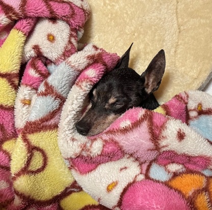 ルークは毛布に包まれて、気持ちよさそうに寝ていました