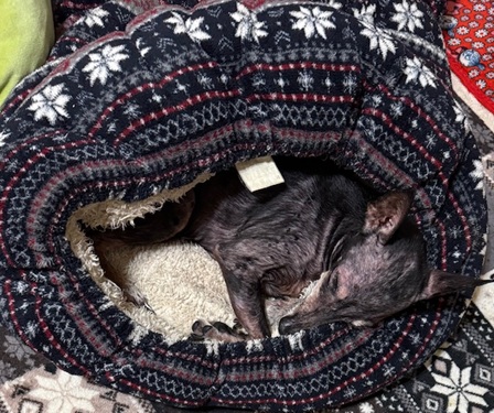 爪切り、途中で逃げ出して~ホイホイ抱えて爪を隠して寝ているマース。