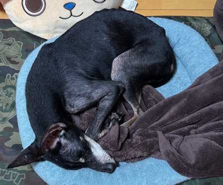 小さい方のベッドで、毛布握りしめて眠るマース