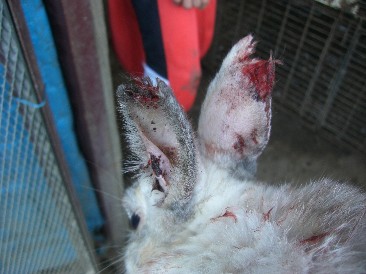 この間の高校生の実習の時、ウサギ小屋を掃除していたらウサギのダッシュが耳を食いちぎられているではないですか!他のオスがダッシュを襲った模様。獣医さんを呼んで治療してもらいました思ったより重症です・°・(ノД`)・°・毎日治療しています…早く良くなってね☆