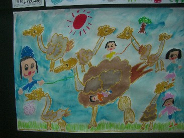 今日は新座市立陣屋小学校で行なわれている「小中学校児童生徒作品展」に子供達と行って来ました^^いや、長男の作品が選ばれて置いてあるのでそれを見に行ったのです^^そしたらその作品展の中にダチョウの絵がありました^^これはきっとこの間写生会で来た時に小学生が描いたものと思われます^^なんだか飾られてて、嬉しかったですね☆