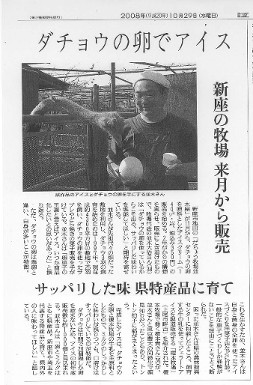 だちょたま白ぱんに続き、新製品を作りました^^来月から牧場でダチョウ卵で作った「だちょうのたまごアイス」を販売します!(^o^)/で、発売前になんと!読売新聞埼玉版の取材を受けました^^こんな事初めてです^^で、今日「だちょたまアイス」を受け取りに行きます^^ぜひ皆さん、食べに来てくださいね☆