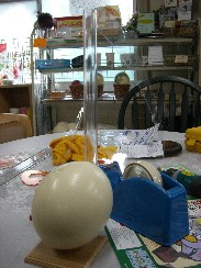 この間の事、コミニティ紙「プチぶんか村」の編集長さんに突然「ダチョウの卵の殻を使って音符の置物を作って!」と言われ、さらに日曜日使うからよろしく、という事で作りました。「だちょたま音符」です。見えにくいかもしれませんが卵殻以外のところはプラスチックで透明なんです。今日、新座の交響楽団がコンサートやるみたいなのでそこに展示するみたいです。5日前くらいに言われたのかな?頼むならもっと早く言ってください(-"-