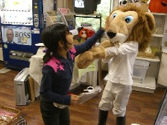 昨日、ポニーの会社さんでハロウィン企画があったらしい。で、仮装した子ども達がやって来ました^^写真は女の子にパンチされているライオンさん。(爆