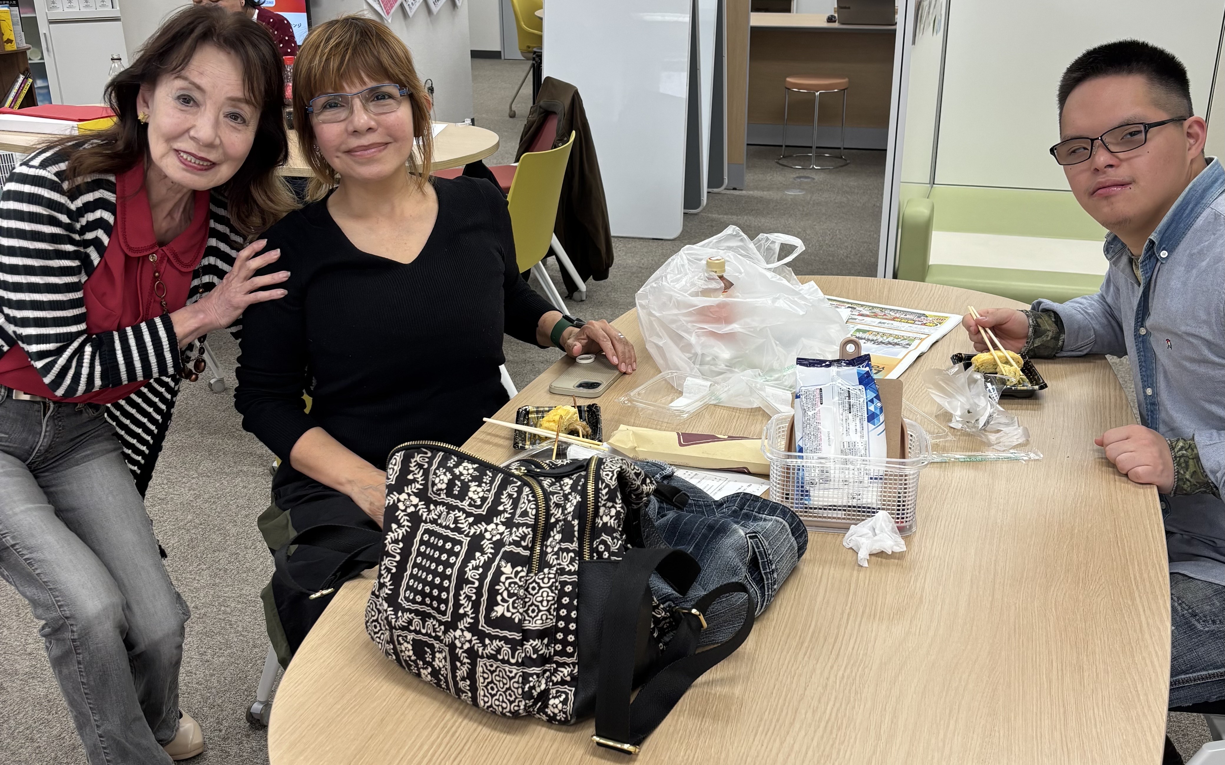 <今日の日本語教室> 今日も楽しく勉強しました 早いものでもう12月になってしまいましたね! ソロモンのジーンさんが年末は仕事が忙しくて来週が今年最後の授業に なります 皆でランチを一緒に食べました 来週は書道講座ですお元気でね