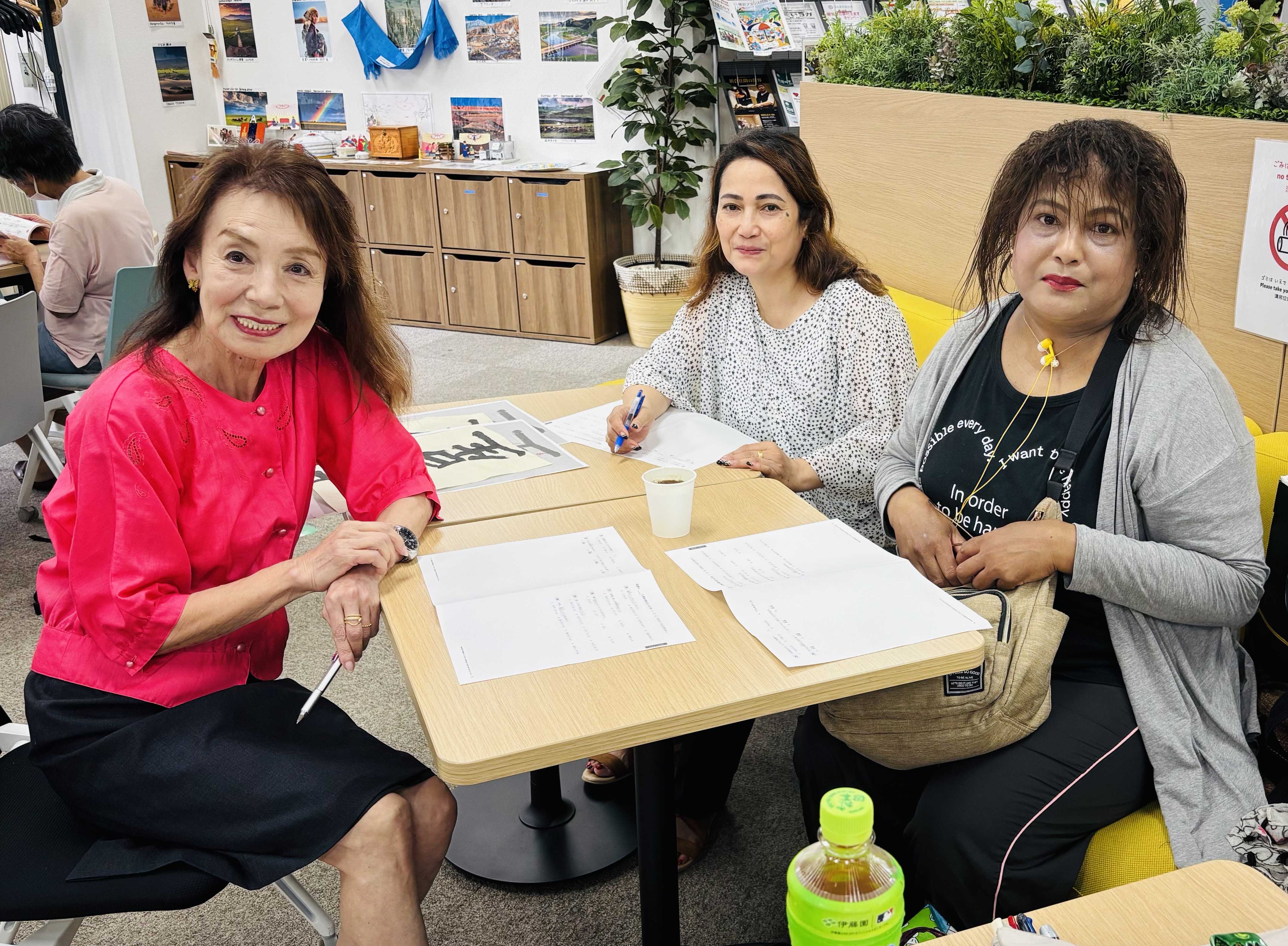 <今日の日本語教室> 今日も楽しく勉強しました 午後からは書道講座で「流星」という字を書きました 難しい字ですが、皆さん上手に書けましたね 暑い日が続いていますが、お元気でね・・・