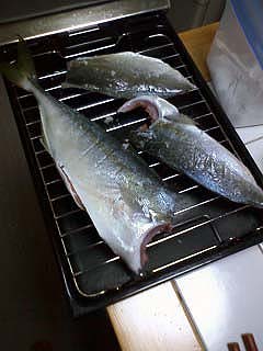 朝晩も涼しくなりすっかり秋ですね。季節も食材も熟するおいしい季節。と言うことで先週に引き続きfoodネタ第二弾「いなだ」の巻。エンズ編集部Iさんより宮城県閖上沖で捕獲されたブリの幼魚「いなだ」(たぶん、9/9にアップされた写真の一番下に写っている大きいもの)をいただきました。さばいて約10日間冷凍保存されていたアミノ酸たっぷりの成熟されたものを「焼き」でいただきました。まずは軽く塩を振ったイナダを皮面から焼いていきます。皮から焼くのはパリパリになった皮でジューシーな肉汁を受け止めるため。皮が焼けたらひっくり返して、今度は身の方を焼きます。うまく焼けるとオリーブオイル(エキストラバージン)のような黄金色の肉汁がじわり、じわり...のはずが、焼きすぎてしまいちょっとパサッとなってしまいました。次は必ず成功させるのでまた下さいね、Iさん。