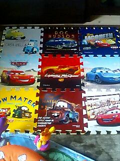 息子のおむつを交換する場所も座布団では小さくなってきたのでプレイマットなる組み合わせ自由なソフトな敷物を購入(ちなみにしまむらで買ったようだが、こんなものまで売ってるですね。)。デザインもカーズをチョイスするあたりに嫁のディズニー好きがうかがえます。あらたなマットでご機嫌の息子。いずれこのマットも小さくなる日が来るのですね!