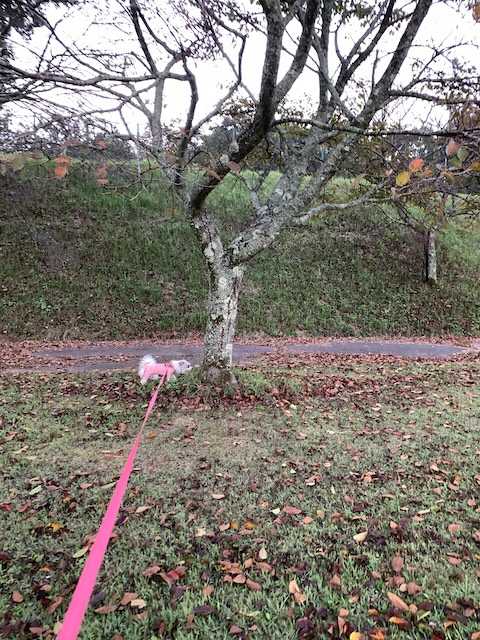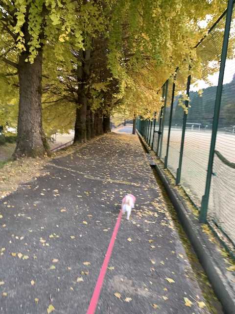 今日も、明るくなってからの散歩です。イチョウの木は、キレイですね。ミミーはボール探しですが、全くありません。あー、なんか、黄金。舞い落ちた葉っぱっも、色とりどり。食後は、休憩。今日は、またテニスコートは、子供の試合。静かに?奥の散歩道に。鹿の鳴き声がしてます。どんぐりを見つけて、下の方では、まだ試合が?キャンプ場は、もう、皆さんおかえりのようです。今日のワンダフル。こんな自然に富んだお散歩道ありがとう。どんぐりもいっぱい。とっても楽しくなっちゃう。だよね。いいところに住んでてよかったね。うん。お母さんありがとう。よかったね。