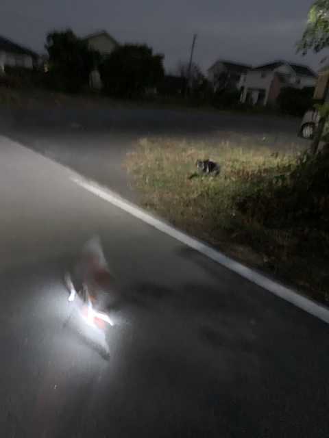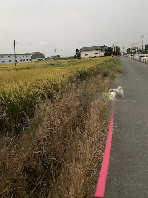 まだ、お米、刈り取らないんだね。もうすぐだと思うよ。太陽の、登ってくる位置が変わってきたような。夕方、あっちこっちにわんちゃん連れが。今日も必死です。朝の雲と似てるけど、スケールが違う!!今日は、これを投げたの、お母さんは。あそこね。投げるにも変化がないとね。でも、投げたところを見て、考えて、行動してるね。黄色い紐付けて、そのまま乾かし棒遊び。紐が、鼻に引っ掛かっているよ。この後、そら君と会って、結構遊べた。で、おやつももらっちゃった。ちょっと暗くなってきたので、街灯に灯りが。LEDが、UFOみたいだね。最後に、13歳のブッちゃんに会いました。とっても細くて、若そうに見えるね。相当ブレちゃったけどね。また会おうねって。会えればいいね。