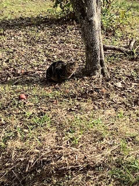 朝でーす。寒いでーす。でも、着せられるのやだな〜今日は、ニャンコいなかった。寒いから家から出ないんじゃ。お昼、畑に、擬態のようにアオちゃんが。わかるかな?夕方、今日は、あの松の実が、、、、夕焼けじゃないね。ほら、あそこにもここにも。風が吹いたからかな?いっぱいあるからって、齧っちゃダメだよ。これが今日のワンダフルなんだから。小さな夕焼け。もう、真っ暗。電灯の下だけが明るい。しっかりあかり持っていかないとね。誰が誰だかわからないね。それも楽しいね。うん。私たちは、匂いでわかるけどね。