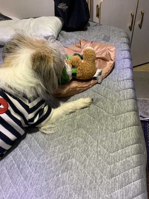 今朝のスーパームーン。遠いいから小さいよ。でも、いつもよりは大きいんだよ。朝食後のミミー。大好き?なくまちゃんと。今日は、暖かな1日でした。だから、水に入ってもいいかなと思ったけど、公園に着いた頃は、太陽が沈んでしまってて、結局、左回りで。内緒ですが、右回りだと、あの水場なんです。これが今日のワンダフル。だよね、いつ行ってくれるかと思ってた。この木の実。まあ、松ぼっくりなんだけど。夕暮れに、松ぼっくりかじる。ミミーかな?きなこ君。5歳だって、いつもは他の子と遊ばないけど、ミミーに釣られたのかな?今日のワンダフルは、落羽松。無限にミミーのおもちゃが落ちてくる。こんな素敵なことって!!very very wonderfulじゃない!!だよね。いいおもちゃがどんどん落ちてきてよかったね。
