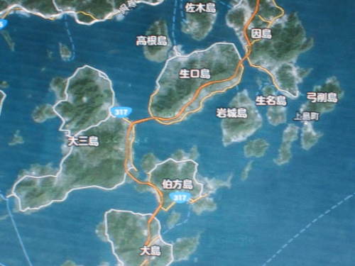 今日も暑かったですねぇ 今週もまた、島へ行くことになろうとは まぁ、伯方島ってところには、月に一度は行くのだけどねぇ そんじゃぁ、どんなところに行ってるのか 下の写真を! 大三島は愛媛県・・・・そして生口島は広島県な訳です今週行ったのは岩城島でした この間のフェリーが3分だとすると、今回はおおむね5分 ぐらいですかねぇ 生口島の横の岩城島、生名島、の隣に佐島(上の写真には名前 が載ってません)、そして弓削島 この間の目的地が弓削島でした 因島の上には向島ってあって、尾道がある訳です 大島の下には今治があるのです 数年前のしまなみ歩きでは生口島の西側を歩いたので、 東側は未知の地域でした よもや、数年後に仕事で、こようとは(笑 しまなみ歩きで歩いた島々と縁があるのですなぁ ただ、島での問題は昼めしが問題でありまして・・・・・ いきのいい魚料理の店があるのに、行った日は休みで・・・・ 結局は、お好み焼きだという(笑 コンビニで弁当買ってという手もありますがねぇ 島を廻っていると、やはり、サイクリングしている人をよく見るなぁ! 今、しまなみの島々ではサイクリングで訪れる人が多くなって いるらしい! 10月に自転車のイベントがありますからねぇ まぁ、そんなところで・・・・・ オマケです しまなみの橋で一番好きな橋です 多々羅大橋です ちなみにこれは広島県側からの写真です! 大三島(愛媛県)~生口(広島県)にかかる橋だよ 上の写真地図を見れば場所がよくわかるはず!