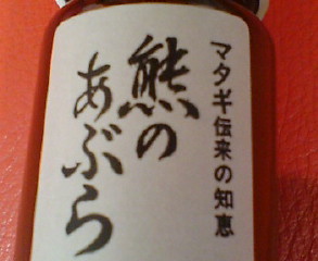 さっきおつかいに行ったら、福島物産展というのをやっていて、これを買いました。ちょいと、おねえちゃん子ズレの私に向かって、こんな甘い言葉をかけてきたのは、やたら肌がツヤツヤしている福島弁のおじちゃん。ちょっと、コレつけてみれや。って言われて手をさしだすと、耳掻きの先くらいの量のクマの油を手につけてくれました。これが、びっくり私、手あれがひどくて、いつもガサガサしているんだけど、ぬったところが、つやっとしたんですよ。なんか、うそみたいだから、もちっとちょうだいよ。といって今度は手のひらにぬってみたの。そしたらね。やっぱり良かったんですよ。それで、ついつい購入。ここの所、ネットショッピングが多かったから、対人で、接客されるとどうも買ってしまう。ダメなわたし。この商品はネットでは買えないんだって。そのおじちゃんは気に入ったら、電話して。二本から送料無料ヨ~って行ってました。このマタギのおじちゃん、明日は渋谷の東急で商売するらしいです。気になる方はGo-♪いけないわすれてた。50cc 3150円 最初だけちょっと匂います。注)てにをは の使い方が下手なので、読みにくい文章ですみません。