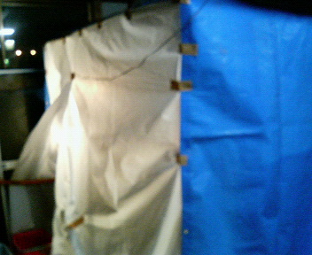 実は今家では、洗面所とお風呂場の改装中なので、今日はこんなお風呂に入りました。今までは、仕事が終わりご飯を食べたら、近所の家族湯や温泉などに行っていましたがだんだんそれに疲れて、今日は車庫に自分達で、工事用の足場やシートなどを利用して仮設のお風呂場を作りました。自分で作ったお風呂は、最高に気持ち良かったです早くお風呂が出来上がらないかな~!あと10日くらいの予定です。