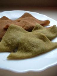 昨日は「ま」さんがお茶をしに来たので、生協のカタログに載っていて以前から作ろうと思っていた「生八つ橋」を作りました。材料 7cm角20枚・白玉粉 100g・砂糖 50~60g・水 1/4CUP・きな粉 大さじ1~2・シナモン 大さじ1~2・あんこ 好みで(作り方)1.耐熱性のボウルに白玉粉と砂糖を入れて混ぜ合わせ、水を加えてよく混ぜる。2.一つにまとまったら均一になるようい手で捏ねて平たくまとめて蒸し器で20~30分蒸す。3.取り出して菜箸かへらでかき混ぜ粗熱が取れたら手に水をつけてよく捏ねる。4.シナモンときな粉を振るって入れた(広げておく)バットに3を入れて生地を転がして 粉を全体にまぶす。5.麺棒で2mm程度の厚さに伸ばし7cmの正方形に切って三角形に折る。調理時間は45分と書いてありましたが慣れないともっと時間がかかります。生地を伸ばしても弾力があるので切ると縮みました。切ってからまた伸ばしたので、最初から2mmより薄めに伸ばしたほうが良いと思います。私はシナモンを半分量にして抹茶味も作りました。どちらも美味しくできました。生八つ橋はルークの大好物です。学校から帰って来て見せたらご飯を食べる前にもつまんでいました。「ま」さんとお茶をしてもかなり残ったのでルークが食べても残るだろうと思ったら・・・1個を残してみんな食べちゃいました。また作るね。