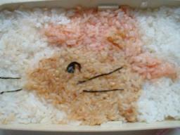 今日は変な天気になりそうです。10時半頃までは晴れていてポチポチと降り始めたと思ったら横なぐりの雨です。そして小降りになって・・・先ほどの天気予報では雷がなるかもしれないと言っていました。ルークは午後から運動会の練習があると言っていました。ひょっとしたら出来ないかもしれません。ちびまるこちゃんのお姉さんのさき子さんを作ったらちょっと太めになってしましました。作る物を決めていなかったので朝、準備をしながらHPで絵を確認しました。顔と耳を一体で作って耳を海苔で描こうと思っていたら・・忘れてしまいました。耳の部分も顔になって太ったさき子さんになったと言うわけです。おかずは手前から・豚肉の炒め物・ジャガイモのつと揚げ・イチゴ・ポークビッツ・枝豆ルークが部活を終えて帰ってくるのが7時半から8時頃で夕飯の時間が遅くなりました。帰る頃にメールを入れてもらうのですが、昨日は7時半を過ぎても入らないので帰りは8時を過ぎるなと予想していたら帰って来ました。一緒にラリーも帰ってきたので夕飯の準備にバタバタです。お米が少なくなってきて金曜日に届くので昨夜はグラタンにしたのでラリーのおかずは青梗菜の炒め物しか作っていなかったので大慌てです。ルークに「メール入れなかったから出来てないよ」と言うと。「忙しかったから入れられなかった」と言います。で、何が忙しかったかと言うと・・ルークは電車の中で携帯に登録してあったフラッシュを見るのに忙しかったそうです。「だったらメール入れられるでしょ!!」私は文句を言ってしまいました。ルークが大学生になると夕飯を食べなくなることが多くなると思うので、今から連絡を入れるクセをつけておかなきゃと思っています。
