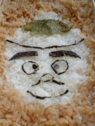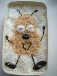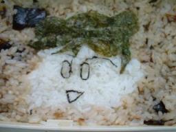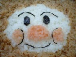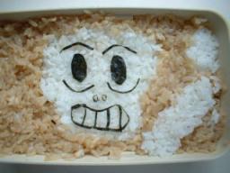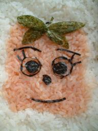 今日は土曜日ですがお弁当を作りました。ルークの学校は今日と明日、文化祭です。8月の末から始めて出来上がるのか心配した映画も出来上がったようです。今日はクラスの試写があるので6時45分出発です。5時から起きて作りました。今日はカビルンルン、悪者なのに可愛い目を作る時に白いご飯を丸くして乗せるのですが、窪みをつけないで作っているので出目になるんですよね。牛乳瓶の底みたいな眼鏡をかけているようにも見えますね。昨日のカレーパンマンのビックリ目もこれが原因ですね。次は窪みをつけて顔との段差を少なくしますね。おかずは手前から・カボチャのチーズ焼き・花ソーセージ・卵焼き・豆腐ハンバーグ・グレープフルーツ文化祭ではクラスでおそろいのポロシャツを着ます。ルークは1年5組なので『Ichigo』のロゴを入れています。クラスの掲示板の名前も「いちご」なんですよ。管理は女の子が中心にしているから「いちご」なのかなと思っていたら、1年5組だったからだとかなり経ってから気がつきました。遅い~、だってクラス名って普段意識していないから・・・・明日はクラスTシャツコンテストの発表もあります。全校で一番良いデザインのTシャツorポロシャツが選ばれるそうです。ルークのポロシャツをチラッと見せてもらったのですが・・・優勝はムリかな?中学の文化祭はジミ~で体育館で各クラスが出し物をして、柔剣道場で美術などの授業で作った作品の展示のみだったんですね。高校の文化祭はクラス展示や模擬店もあるし楽しいでしょうね。