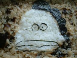 今朝起きると雨が降り始めて雷がなっています。「あらら、ラリーとルークは出かけられるかな?」雨の降りも強くなってTVでは都内23区に大雨洪水警報が出ています。長時間降り続けるのかと思ったら、出かける頃には上がって、今は晴れています。天気予報で「秋の長雨」の時期に入ったと言っていました。今日は夕方からまた雨だそうです。あたしンちの息子、ゆずひこです。髪の毛が帽子みたいになっちゃって、下膨れのホッペが思ったように描けませんでした。本当は茶髪なんですよ、小学生なのに。おかずは手前から・つくね・ハッシュドポテト・卵焼き・ワカメの炒めもの・リンゴつくねには蓮根とブロッコリーの茎をすり下ろしていれました。つなぎは片栗粉とおからです。卵焼きは翔子さんのお弁当を真似て海苔を巻き込みました。食感と見た目が良くなるようにとカニカマを入れたりしていましたが、イマイチだと思ってました。海苔を巻くと見た目にインパクトがありますよね。渦が中央に寄っちゃったけどなかなか良いと悦に入っています。翔子さんはお絵かき弁当を作られていて、絵が細かくて凝っています。私にはちょっとムリかなって思いますが、見ているだけでも楽しいお弁当です。