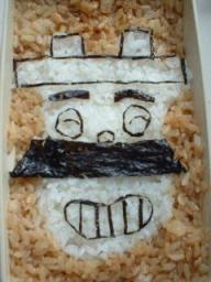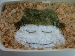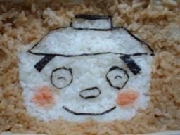 早く起きたからと油断をしているとあっと言う間に時間が迫ってあせってしまいます。起きたらとっとと用意してしまった方が良いのかな?起き抜けにサッサと動けますか?私は動けないんですよね。ボーっとしていないボーちゃんです。鼻水も海苔で描いたら鼻に見えるんですよねぼんやりした感じを出すのって難しい。顔の輪郭ももうちょっと下膨れですね。ボーちゃんってたまに顔がキリリとして鋭いことを言いますよね。そのときの顔ですね、と言い訳しちゃったりして。ご飯は実家の母からもらった「ワサビ入り昆布」です。昆布の佃煮にワサビが入っているって珍しいですよね。これをご飯に乗せるたりまぶしたりすると抗菌シート要らないと思います。味はちょっと不思議な感じです。おかずは手前から・カボチャのコロッケ(自家製) と白身魚フライ(冷食)・ニラとカニカマ入り卵焼き・きんぴらゴボウ・ソーセージ・バナナ魚のフライは冷凍食品が美味しいですね。以前はアジを3枚に下ろして作っていましたが、冷凍食品でも充分美味しいので最近は頼ってます。コロッケは冷凍でもまあまあのものもありますが家で作るほうが美味しいですよね。