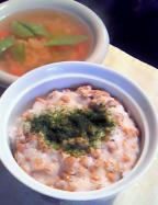 今日は暖かくなりました。でも、曇っているので室内は昨日より寒いんです。なので、外に出ると「暖かい」と反転状態になっています。午後は雨の予報通り、雨が降り出しました。でも、晴れ間が見えたりして、ヘンな天気です。風が強くて雲がドンドン流れています。一雨ごとに暖かくなるでしょうか。最近、納豆を食べてなくて『食べたい~』と思っていたので、とろろと合わせて丼にしました。納豆の粘りが少し弱くなるので、ご飯が噛みやすくなります。それにこの2つはよく合うんですよね。今日はとろろがちょっと多目でした。納豆にとろろが絡むくらいが一番美味しいですよ。後ろはパスタ入りコンソメスープです。今日はあっさりした2品でのランチです。バクダン納豆って知ってますか?納豆に色々な具を入れる食べ方だそうです。納豆ってそのままでも粘りや臭いなどが独特で、自己主張が強いのに他の食材と合わせると美味しくなるんですよね。これが、また不思議でもあり魅力でもあるんですよね。そうそう、大手さんの納豆で機能がプラスされているものがありますよね。あれって、納豆菌を遺伝子組み換えして作っているそうですよ。大豆も出来れば国産のを食べたいですね。遺伝子組換え大豆は使用しておりません。お中元・お歳暮・ご挨拶・お礼・景品にもどうぞ!国産...ご飯にかけるなら、この納豆!勝負納豆!発酵観察でつくるネバリ!■■粘りの旨み■■国産大豆...