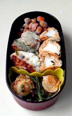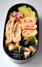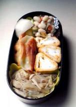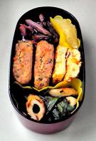 九州や四国では大雨だそうですね。梅雨の終りって集中豪雨になって土砂崩れなどの被害が出ることが度々あります。今回は大丈夫なのかしら、心配です。自然災害の時は自衛隊が活躍しますよね。演習なんてやっている自衛隊は要らないって思いますが、災害救助の場面では「あってよかった」と思う勝手な私です。でも、今は震災の方に行っているだろうから、また被害が出るとホントに困ります。何も無いことを祈ります。 おかずは手前から・イカとニラのオイスターソース炒め・カニカマ巻き出し巻き卵・油揚げの肉詰め・五目豆・グレープフルーツです。オイスターソースを買いました。魚介類やお野菜を炒めて味付けに使うと美味しいですね。でも、チトしょっぱい。お砂糖を入れるのはいやなのでみりんでカバーします。油揚げの肉詰めはPal systemで買った冷凍食品です。温めるだけで食べられます。薄めなのでお弁当にも入れられます。これ、なかなか良いです。私は高野豆腐の肉詰めを作るのですが、油揚げで作って冷凍しておけば夕飯のおかずにも使えますね。家で作るなら野菜を半分くら入れられますものね。次は自家製が登場の予定です。