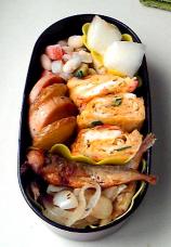 また雨ですね。気温も低いし・・・明日は暖かく、いえ暑くなるそうです。本当かな。 おかずは手前から・カレー・海苔巻きだし巻き卵・花ソーセージ・大福風大根もち・リンゴです。カレーは昨日の夕飯に作りました。今朝、油揚げを入れて朝食にも食べました。一晩経ったカレーって美味しいですね。お友達のライラックさんがお弁当のおかずに蕪と黒豆でお餅を作っていたのを真似させてもらいました。うちには丁度赤えんどうがあったので早速煮て、蕪が無かったので大根をすりおろして白玉粉と米粉でお餅を作りました。一度茹でてから焼きました。余分に作って食べてみたら、大根が入ってるって分かりません。頭の方を使ったからほんのり甘みもあっておいしいです。息子に感想を聞いてよければ多めに作って冷凍しておこうと思います。小女子の季節になったので、佃煮を作りました。軽く煎ってお醤油・みりん・酒・甜菜糖・しょうがのすりおろしで味付けました。ご飯のお供にピッタリなので朝食にも食べています。これからしばらくは小女子が楽しめます。関西では「いかなご」って言うんですよね。赤腹といって朝一番に餌を食べたいかなごです。お腹は少し赤いですが、作り方はすべて同じで仕...価格:1,575円(税込、送料別)佃煮になっているものを買えば早い。期間限定販売!早春の味!いかなご/解禁/2011/釘煮/くぎ煮/いかなごのくぎ煮/小女子【送料無料...価格:1,980円(税込、送料込)MSG Freeなので安心。それに、これ安い~