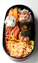台風が大きな被害を出していますね。ニュースで防波堤が壊れていたのを見て驚きました。すっごい力です。和歌山だったかしら上陸したんですよね。ホント早く過ぎ去って欲しい。 今日は水曜日なので通常は早めにお昼ご飯を食べてから出かけますが、今日はレポートの最終提出日とかで早めにでかけました。お弁当を作ろうかと声をかけたら「簡単なもので良い」と言うのでオムライスにしました。そしてカキフライがおまけ。あ、ゼリーを持たせようと思ってたのに・・・忘れちゃいました。先ほど息子からメールが来て「きゅうり入れた?」と聞きます。入れてないと応えると、美味しくない野菜が入っていると言います。実は~ズッキーニを入れたのです。そして、アスパラガスも入っています。アスパラは何度か入れたのでOKだって分かっていましたが、ズッキーニは初めてです。あ~ら、ズッキーニはダメだったのね。残念~私も同じお昼ご飯なのでこれから食べようと思います。ラタトゥィユにも入っているのでケチャップと合わなけは無いから私は美味しくいただけると思います。